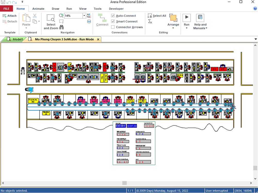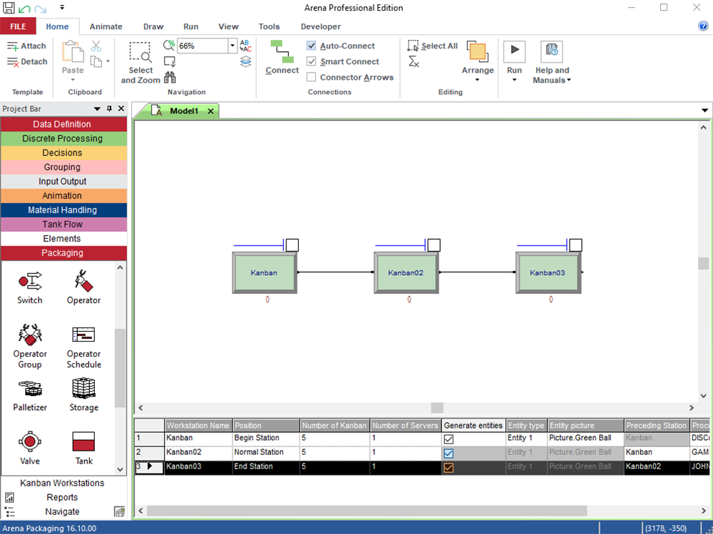 1. A manufacturing plant with machines, people, transport devices, conveyor belts, and storage space.